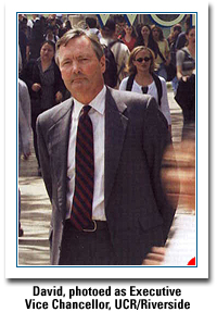 Just recently, when the Chancellor resigned, David was widely believed to be the leading candidate to become Chancellor. Much to everyone's surprise, including his supporters, he withdrew his candidacy and returned to his position as Executive Vice Chancellor. He and Katherine made the decision together. He had already been serving as Acting Chancellor for some time, and they both found the new position challenging and enjoyable. The eight years as EVC were good and he was well received in his work. But it demanded an immense amount of time and energy, and the Chancellor position would be somewhat different, but equally demanding. I think he decided, with Katherine's full agreement, that they should both have more time to enjoy the rest of their years. He is now fifty-nine.