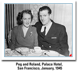 All the love in the world is yours, Honey; I am just sorry I have to keep it all cooped up in myself instead of giving it to you in person. A lot will be stored up for you and whatever affectionate notions you may have on returning home will find a very warm welcome, you may be sure. Meantime, have wonderful dreams of me. This one was the letter telling about Okinawa. I knew you were there because Jade wrote me of it. I would rather not have know at the time I think because it bothered me a lot. The radio would say that seventy-five ships had been suicide dived at and I'd get an awful feeling and a tight stomach that finally about got me down. But Dr. Taylor fixed me up with some sedative that works fine. Perhaps you noticed for a while that I didn't do much on the house or anything else. It was partly the weather too, and partly my prowler. But mostly worry for you. Sweet, I'm glad if I drive you insane once in a while. You are such a well balanced person, even in your insanity which is so wonderful and completely demoralizing to me. Being so very mad about each other and letting go completely when we are together I think makes us much better balanced in other things. I have so often pictured various ways in which I will set you on your ear when you are home again. I hope I don't have long to wait because I have thought of so many ways to harass you that you may not be able to stand my concentrated fury when you do get back here. In three words, I love you. I'm sure I had more things to tell you, but I can't think of them, so I'll just finish this one off and apologize for its being so dull and uninspired. I love you to distraction and I suspect I'm jittery because of the news [of the atom bomb on Hiroshima]. I wish it would get over with and I'm anxious more about when you think you'll get back. I'm looking forward to your letters of next week. I love you very much Roland. Peg I feel that in a couple of weeks we will know a little more about when you will be home, and meantime I think it fitting and proper that they bring home the war prisoners first. [Roland had written that his carrier had picked up several hundred emaciated Australian and some American war prisoners from Formosa and had to establish a hospital for most of them on the hangar deck.] I really wouldn't want you back if some of those fellows were still in their rotten camps. The Navy, as usual, does things right, I guess. But still I'd sure like to have you back. You are such an angel in so many ways. I don't know of any way that you are not except for changing your socks and taking baths. But maybe I can take you in hand when you come home. Also there is one part of your letter --- what should you do if you should get leave. Now Honey! I can think of all sorts of answers to that question --- ranging all the way from facetious and silly to just plain mad as hell. I say get your leave and then see what you want most to do with it. Good gosh, man. If it cost us a thousand dollars of someone else's money I'd say come home, come home, a million times over. Even if it's only for a day, Honey come home! Just to be sure of you, I'll enclose a blank check and if you want to cash one for any amount to catch a plane home, or get a round trip ticket, write out a check, phone me and let me know, and I'll borrow the money to cover it in the bank here, and they'd lend us up to two hundred dollars --- perhaps more --- anytime, just for the asking. Particularly if it were to get you home. I am getting damn sick and tired of going places all by myself! Inasmuch as you seem to be plagued by "sists," don't you really think it is about time you discovered that the spelling is "cyst," which is what you had removed, in distinction to "cist," which Noah [Webster] says is "a sepulchral chest or chamber." I suppose a sepulchral chamber would be a privy down in the basement. Anyway, sometimes your spelling appals me. But I love you none the less and hope that Doc was most very careful with that knife. After all,...... I don't know what I started to say above, but I couldn't think of any way to end it that would not embarrass the censor. I'll take care of you when you get home. What that bathtub needs considerably more than any four inch stool is about three more feet in length. No kidding, you can't imagine it till you see it, and don't dream too much. It would be like landing a B29 on an LST. But we have a lot of space in our broad acres for baths, planting seeds, or what have you. Now about this business of acting nasty just for dramatic effect when you feel like starting something. I really can't go into it in a letter, but believe me, you try it at home with me or anyone else, and I'll flatten your ears for you... I don't know Peterson, so I can't say much. I know lots of people I'd love to bite, and occasionally I do it in a mild way. But Doc Ballbach seems a harmless sort, though not too bright. But Honey, I think he thinks a lot of you. He couldn't possibly help but like you if he is so close to you and sees how wonderful you are. Without loving you, I still think he must have been hurt and disappointed. I don't know that the funny look on his face was worth it, but maybe it was... Oh, gosh, now I didn't mean to go into it all like that. I hope you don't mind too much, because I love you and love to have you as perfect as you are. I'll sure be glad when it is over. If it's a whole year more, then I'll just shrivel up and die. If you should come home next September and not find me around but find an old dried up lime or maybe a lemon, squeeze it hard, because it's probably me. But what a poem! I don't agree with you that it can be shown to anyone in spite of the figuration. I feel that there is not the least mistake about what it is saying or in its meaning all the way through. It is a very nice particular poem from you to me, but I won't show it to anyone because it is too personal. It is a beautiful thing --- like our love --- and could o
