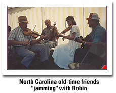 Solo fiddlers are usually accompanied by guitar, and in the course of two decades or more she has played with dozens of guitarists. Finally, some three years ago, she started a group called Spirit Fiddle, and has been playing with guitarist Brian Clancey ever since. Spirit Fiddle has recorded two CDs and is in the process of making a third one. They perform professionally at least once a week at various locations, and their fame is spreading. A few years ago, Robin wrote a letter to Peg, and it is here below, just as she wrote it: 6 May 1997 Hi Peg, Happy Mother's Day! I think you're a pretty exceptional mother, you know. You did all the normal, expected, motherly things, like making sure I wore boots and mittens, and not wanting me to go ice fishing when the ice is thin or trout fishing when it's rainy and cold. It must seem amazing to you that your youngest child is in her late 40s, and I know you worry about me still, even though I've been a responsible (!) adult for many years. Women sometimes sit around and talk about being women and finding our way (cow sessions, we call them), and we talk about women who influenced us. I tell about a wonderful, creative, and intelligent woman who happens to be my mother. She lives gently on this earth, fixing, planting, arranging, propagating, healing, without great need for approval or acknowledgment. I'm very proud of you. Growing up, I thought (and observed) that you could do absolutely anything. Just think of the list! It was pretty intimidating to a child! You spoke fluent German. You could grow anything at all, from the best garden, with food we could really eat, to fruit-bearing citrus trees grown indoors from seeds. You could break and train and ride and show horses. You cooked, made butter, cared for the animals, and mucked out the stalls. You made clothes and knit sweaters for all of us. You restored furniture, both the wood refinishing and the upholstery. You painted and wallpapered whole houses. You built stone walls and the stone terrace off the French doors in Tyngsboro. When I left graduate school, you built furniture into my van and made curtains for it. In the Jericho Hill house, you painted scenes from our childhood all through the upstairs, from David kitty to the swing on the big tree in the front yard. One of your favorite things is learning languages for fun. I know you know German, French, Italian, and Latin. I also remember your learning Russian. And a bit of Urdu, Sanskrit, Yiddish, Romansch, and probably others. Complicated multi-color sweater instructions from Scandinavia? No problem for you! That is your favorite kind of puzzle. The most amazing thing you've made for me is my violin. In all of my travels, I've never met another fiddler who plays a fiddle made by his or her mother. It's a beautiful and warm instrument, magical still after these many years, and it brings me great happiness to play it. I love to tell the story of how my fiddle came to be, and to play Mother's Waltz. Do you remember all those Saturdays you drove me to Boston for violin lessons in high school? I can't imagine how boring that must have been for you, driving an hour each way, waiting around all day for lessons, string quartet, orchestra, and theory classes. I was pretty lucky to have you both put a priority on that kind of education, and lucky to have you there supporting and encouraging me. And then there were the concerts and recitals, the rehearsals for Actorsingers and the Nashua Symphony, and on and on. Do you remember the time Honey was away for a week and you built all those bookcases into the upstairs hall in Tyngsboro? Not just straight bookcases, but room for paintings and lighting, and shelves of different depths, all professionally finished with molding and all painted before he returned? I think you did the same thing on the porch in the Pleasantville house. The porch where we sat all day watching the Kennedy Inauguration. One time I wrote a report for school about French cathedrals, and you illustrated it by making pencil drawings of several of the cathedrals. They're little works of art. I still have them. I can't recall the report I wrote at all, but I can close my eyes and see those pictures. Unfortunately, I did not inherit your artistic talent. Do you remember playing South Pacific and Desert Song and the other shows we played for Actorsingers? Steve Norris used to put lifesavers and mints on our music stands, and make us feel important. And we used to look cross-eyed at each other when we were bored, or bug our eyes out, or share some other private joke. How about the time the lights went out all over the northeast, and I practiced by candlelight in the dining room? I think Honey was away on business that night, so we kept each other company in that big old New England colonial with its 8 fireplaces and wideboard wainscoting. Actually, that was the perfect house for sneaky candlelight, wasn't it? Or the trip with Honey to Hawaii, just the 3 of us? You and I came back together and spent a day and a half in San Francisco, ending with (most of) the Sound of Music, the late flight to Chicago, and chocolate ice cream sodas in the airport at 5:30 in the morning. So even though I'm too busy, and I don't get up to visit as often as I should, you continue to inspire me. I hope you know how important you are to me, and how much I love you. Love, Robin Continue with The Arbors |