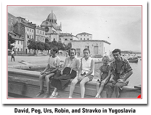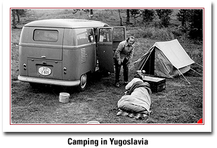 It was after the Vienna seminar that we decided to drive down to Yugoslavia for a two-week camping trip in our Volkswagen bus. We had some mighty interesting experiences camping in Yugoslavia in 1957. We had purchased a camping guide for Europe, and in it we found that a camp at Bala Czirka was on our way. It was described as comparatively lavish, as East European camps go, so we looked forward to a comfortable, restful overnight and hot showers. We followed the road directions to the camp. Soon, our route took us off the main road onto a rough dirt road. Then the instructions indicated a right turn into what was not a dirt road but a primitive wagon trail. Could this lead us to the beautiful camp at Bala Czirka? Sure enough, after about two miles on this bumpy backwoods road we arrived at Bala Czirka. It was a very small village, and there was no camp there at all. Fortunately, a Yugoslav participant from the international student seminar in Austria was accompanying us - and serving as